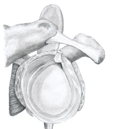 Abriß der langen Bicepssehne und des daran anschließenden hinteren Labrums vom oberen Glenoidrand (Schultergelenk-Pfannenrand).