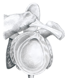 Längsaufspaltung der langen Bizepssehne mit Dislokation eines Labrum-Bizepsanteils nach unten in den Gelenkspalt